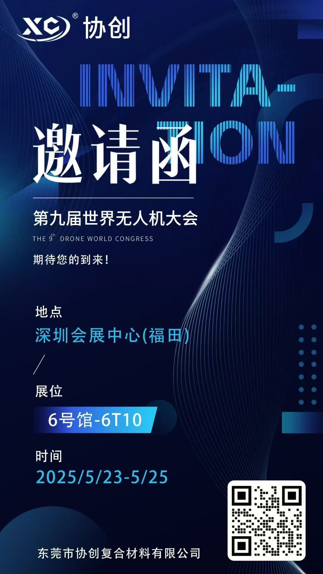 全球無人機行業年度盛會——第九屆世界無人機大會將于2025年5月23日-25日在深圳會展中心(福田)盛大開幕!作為復合材料領域創新先鋒,東莞市協創復合材料有限公司誠邀您蒞臨6號館-6T10展位,共探輕量化材料與無人機融合的無限可能!